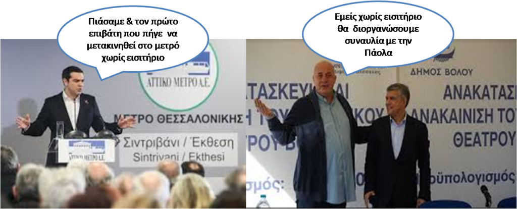 Το “προνόμιο” να εγκαινιάζει το Μετρό της Θεσσαλονίκης ο πρωθυπουργός σήμερα προεκλογικά, ενώ αυτό αναμένεται αυτό να λειτουργήσει έπειτα από δύο χρόνια, δεν το έχουν ως προεκλογικό σανό στη Θεσσαλονίκη μόνο. Εδώ στο Βόλο πέραν του σανό του κ. Τσίπρα, τρώμε και το σανό των κ.κ. Μπέου και Αγοραστού, που έστησαν πρόσφατα φιέστα με τον μουσαμά του Δημοτικού Θεάτρου της πόλης, που θα είναι έτοιμο μετά από 5 χρόνια και ενώ έχει ήδη καθυστερήσει η ένταξή του στο ΕΣΠΑ 4 χρόνια. Αυτό θα πει δούλεμα…