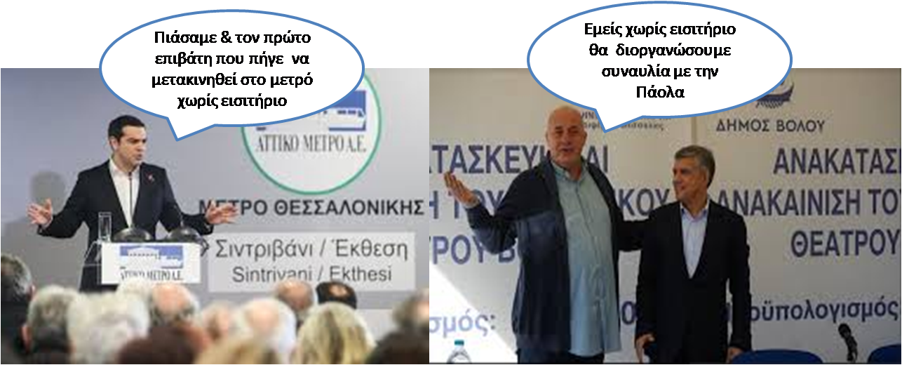 Το “προνόμιο” να εγκαινιάζει το Μετρό της Θεσσαλονίκης ο πρωθυπουργός σήμερα προεκλογικά, ενώ αυτό αναμένεται αυτό να λειτουργήσει έπειτα από δύο χρόνια, δεν το έχουν ως προεκλογικό σανό στη Θεσσαλονίκη μόνο. Εδώ στο Βόλο πέραν του σανό του κ. Τσίπρα, τρώμε και το σανό των κ.κ. Μπέου και Αγοραστού, που έστησαν πρόσφατα φιέστα με τον μουσαμά του Δημοτικού Θεάτρου της πόλης, που θα είναι έτοιμο μετά από 5 χρόνια και ενώ έχει ήδη καθυστερήσει η ένταξή του στο ΕΣΠΑ 4 χρόνια. Αυτό θα πει δούλεμα…
