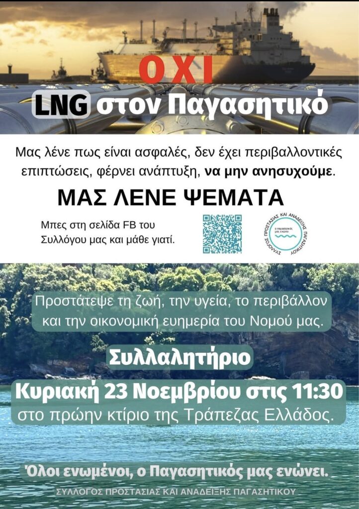 Σε ανακοίνωσή τους οι τοπικοί φορείς που διοργανώνουν το Συλλαλητήριο κατά του LNG αναφέρουν: