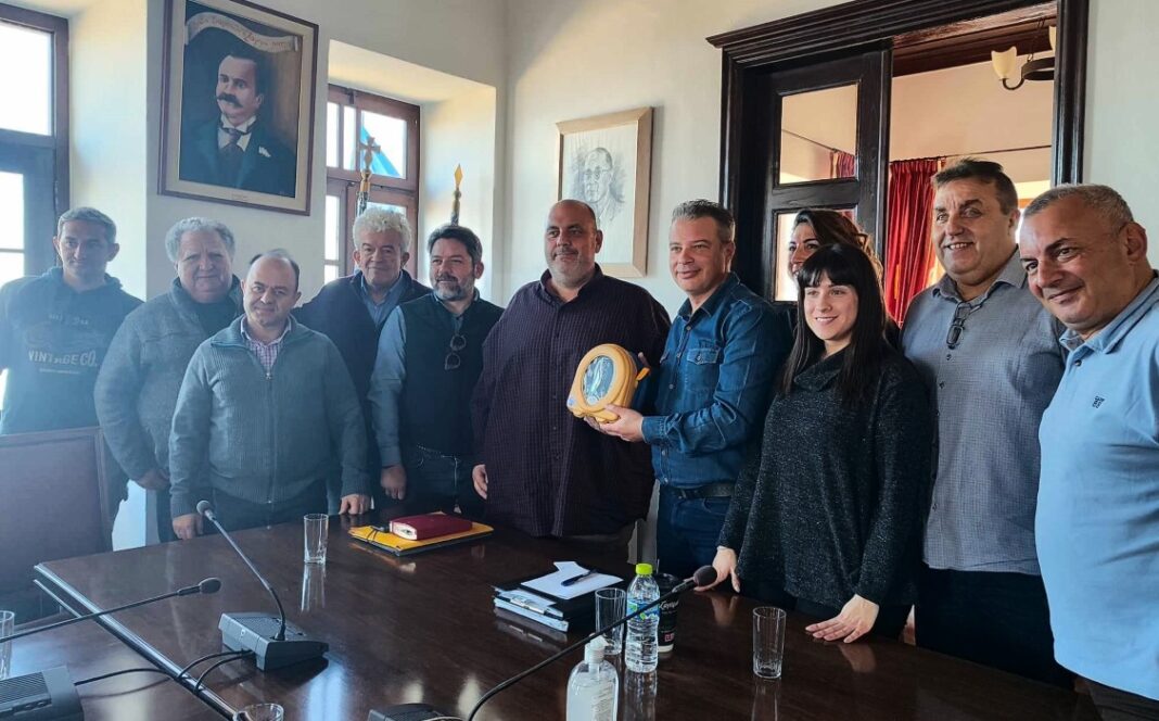 Η παράδοση του απινιδωτή, ο οποίος αποτελεί ευγενική προσφορά της εταιρείας Karabinis Medical προς την Γραμματεία και τον Δήμο, έγινε σε επίσκεψη που πραγματοποίησε στον Δήμο ο Γραμματέας Παραγωγικών Τομέων της ΝΔ κ. Άκης Μπάφας συνοδευόμενος από τον Διευθυντή της Γραμματείας κ. Γιάννη Τριανταφύλλου και την Οργανωτική Συντονίστρια του Τομέα Τουρισμού της ΝΔ κα Αργυρή Κατοπόδη.