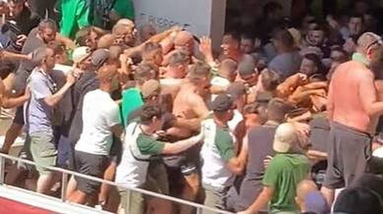 Συγκλονίζουν τα πλάνα από βίντεο που κάνει το γύρο του διαδικτύου, και απαθανατίζει οπαδούς της γαλλικής Σεντ Ετιέν να παίζουν ξύλο μεταξύ τους.
