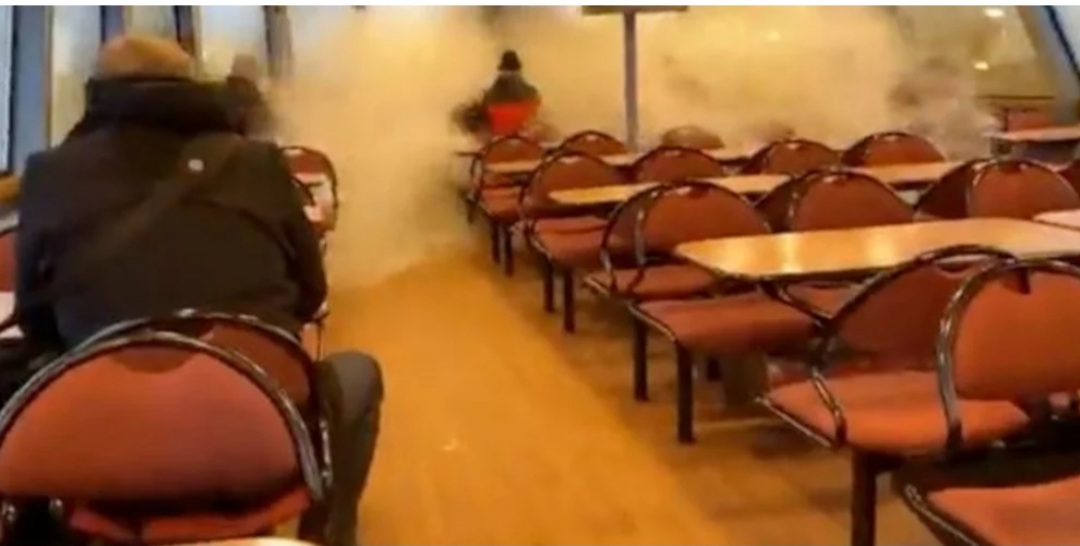 Ένα απίστευτο βίντεο από τη Γερμανία δείχνει ένα πελώριο κύμα να σπάει τα τζάμια πλοίου, με τους επιβάτες να βρίσκονται μέσα.