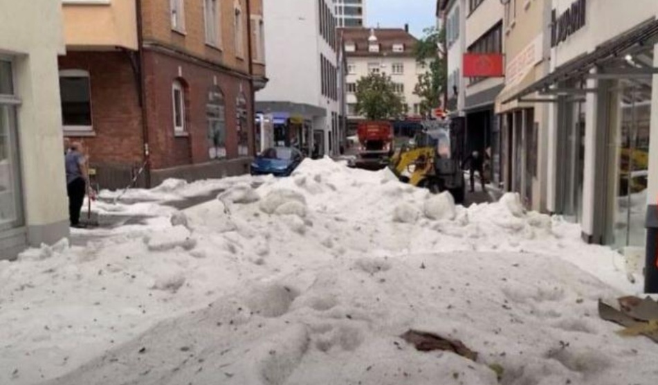 Στο απόγειο του καλοκαιριού στο βόρειο ημισφαίριο, τα εκχιονιστικά μηχανήματα βγήκαν στους δρόμους της νοτιοδυτικής Γερμανίας καθώς βίαιη καταιγίδα άφησε τεράστιες ποσότητες χαλαζιού.