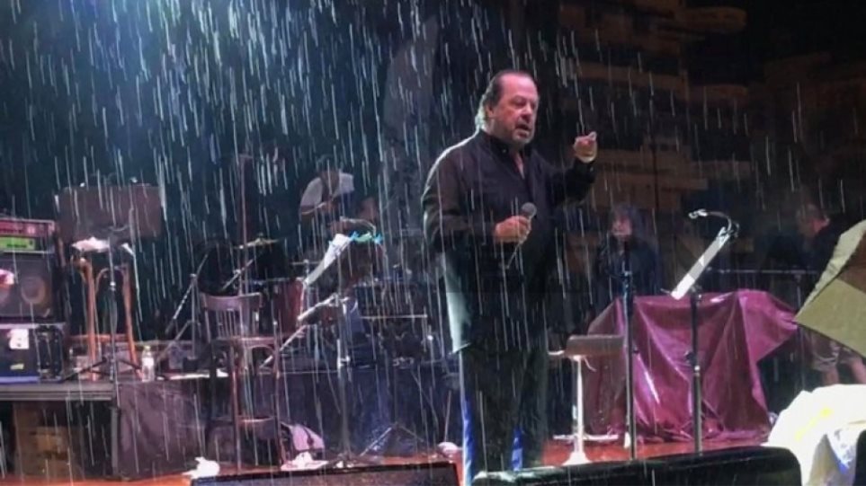 Τελικά η συναυλία διακόπηκε με τον κόσμο να τρέχει να καλυφθεί από την βροχή κάτω από πολυκατοικίες.