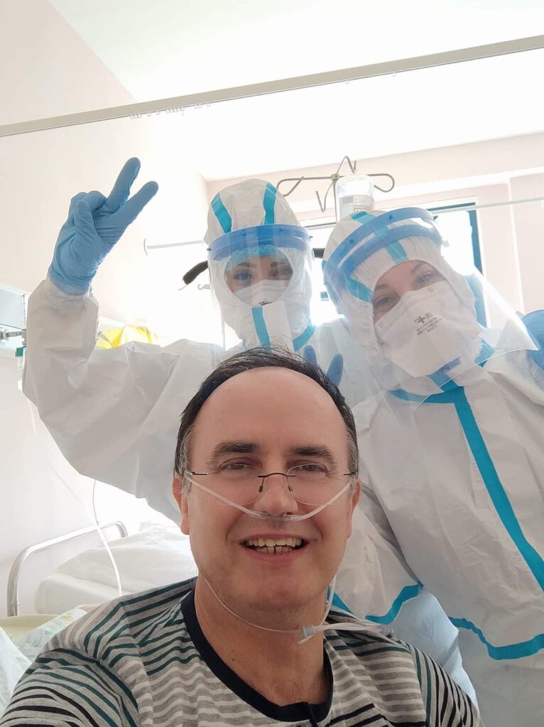 “Ήταν σίγουρα η μεγαλύτερη μάχη μου και φυσικά δεν θα κατάφερνα τίποτα μόνος μου εάν δεν υπήρχαν όλοι αυτοί οι υπέροχοι άνθρωποι και εξαίρετοι επιστήμονες . Οφείλω λοιπόν ένα μεγάλο ευχαριστώ στον επικεφαλή του τμήματος της μονάδας covid ιατρό κ. Μάνδρο, στους γιατρούς κ.Ποτολίδη , κ. Χαχόπουλο , κ. Βασιλόπουλο , κ. Μαλιαρού , κ. Παντελίδου και κ. Κουρουπή. Για την άριστη περίθαλψη ευχαριστώ επίσης τους νοσηλευτές Πρόδρομου Βασιλική, Διαλετάρα Νίκο ,Καραδήμα Φώτη ,Τζιγκοπούλου Μαρία , Τσιούμα Σοφία , Μάγγου Χαρά , Πανταζή Βαγγέλη , Κούτνα Μαρία , Αναστασίου Κατερίνα , Χριστοφορίδη Μαρίζα καθώς και το υπόλοιπο βοηθητικό προσωπικό για την άψογη συμπεριφορά τους.