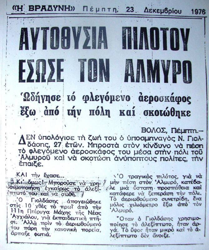 Ο Υποσμηναγός (Ι) Γιολδάσης Νικόλαος του Στυλιανού θυσιάστηκε για να σώσει τον Αλμυρό Μαγνησίας!
