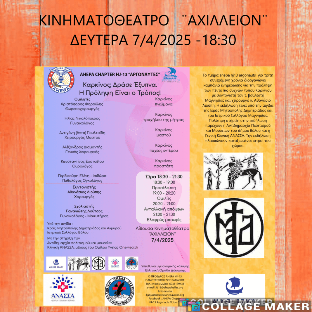 Με αίσθημα ευθύνης απέναντι στην κοινωνία και με γνώμονα τις αρχές της Φιλανθρωπίας, της Κοινωνικής Υπηρεσίας και της Εκπαίδευσης, η AHEPA HJ-13 “ΑΡΓΟΝΑΥΤΕΣ” με έδρα το Βόλο διοργανώνει ενημερωτική εκδήλωση με συντονιστή τον τ .βουλευτή Μαγνησίας κ. Αθανάσιο Λιούπη και με τίτλο: