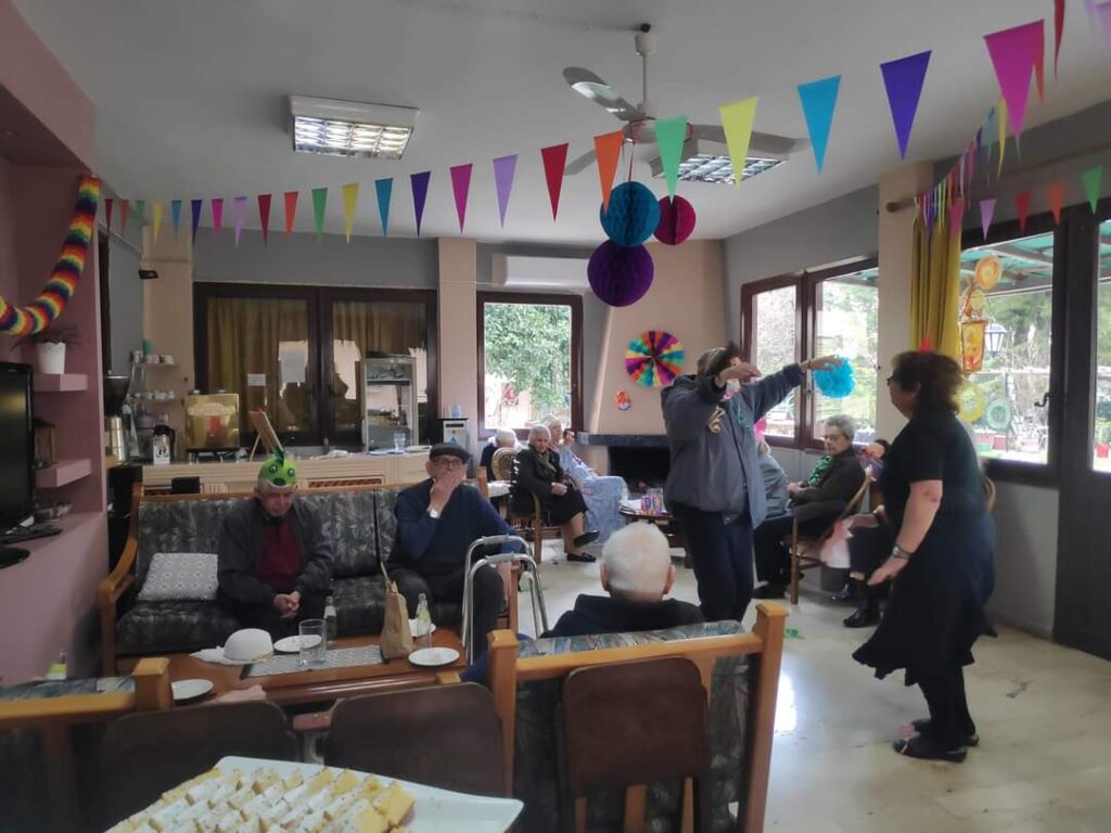 Σήμερα, 24 Φεβρουαρίου 2023, οργανώθηκε στο Ίδρυμα, αποκριάτικο πάρτι, στο χώρο του καφενείου, όπου οι ηλικιωμένοι ντύθηκαν γιορτινά, μασκαρεύτηκαν και διασκέδασαν με τραγούδια και χορό! Απόλαυσαν αλμυρά εδέσματα και υπέροχα γλυκίσματα και γέμισαν τα πρόσωπά τους με γέλια και χαρά!