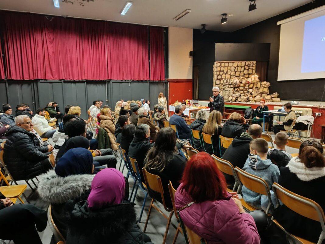 Στην κατάμεστη αίθουσα εκδηλώσεων του σχολείου, σε μια πολύ όμορφη ζεστή ατμόσφαιρα έγινε θεατρική ανάγνωση του χριστουγεννιάτικου διηγήματος του Αλέξανδρου Παπαδιαμάντη «Το άνθος του γιαλού» από τις φιλολόγους κ. Αλεξία Γρηγορίου και κ. Αθανασία Παππά, ενώ δραματοποίηση του ποιήματος του Γ. Βερίτη «Ζητώντας το Φως», παρουσιάστηκε από μαθητές του σχολείου.