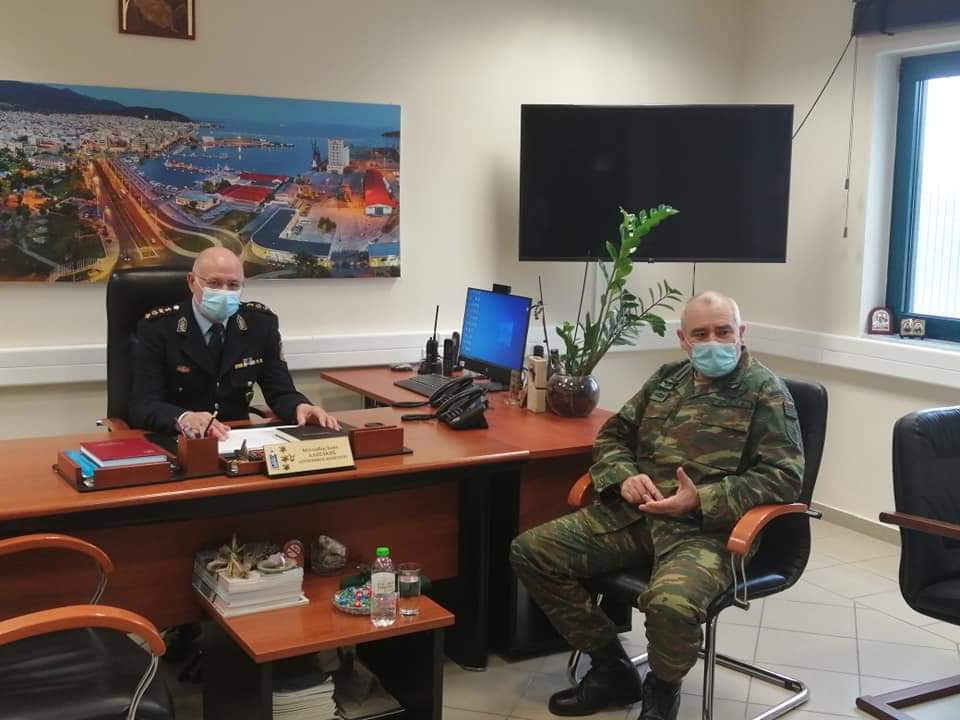 Εθιμοτυπική επίσκεψη πραγματοποίησε σήμερα 23/03/2021 στο Γραφείο του Αστυνομικού Διευθυντή Μίλτου Αλεξάκη, ο νέος Διοικητής της 32η ΤΑΞ. ΠΕΖΟΝΑΥΤΩΝ, Ταξίαρχος κ.Δημήτριος ΔΡΟΣΟΣ. Κατά τη διάρκεια της επίσκεψης, η οποία διεξήχθη σε ιδιαίτερα θερμό κλίμα, παρουσία του Α’ Υποδιευθυντή της Διεύθυνσης Αστυνομίας Μαγνησίας Αστυνομικού Διευθυντή κ. Αθανάσιου ΚΑΛΑΜΠΟΚΑ και του Β’ Υποδιευθυντή της Διεύθυνσης Αστυνομίας Μαγνησίας Αστυνομικού Υποδιευθυντή κ. Γεωργίου ΝΤΙΖΕ, έλαβε χώρα συζήτηση για τρέχοντα θέματα της επικαιρότητας και ανταλλάχθηκαν απόψεις σχετικά με τη βελτιστοποίηση και συνέχιση της συνεργασίας των Σωμάτων Ασφαλείας σε επίπεδο Νομού, με κοινό στόχο την προσφορά βοήθειας στην τοπική κοινωνία, όπου απαιτηθεί. Παράλληλα υπογραμμίστηκαν οι από ετών άρρηκτοι δεσμοί συνεργασίας Αστυνομίας και Στρατού. Ευχαρίστησα τον Ταξίαρχο κ. ΔΡΟΣΟ για την ευγενική του επίσκεψη και με την ευκαιρία ανάληψης των καθηκόντων του, του ευχήθηκα Καλή Επιτυχία στο έργο του.