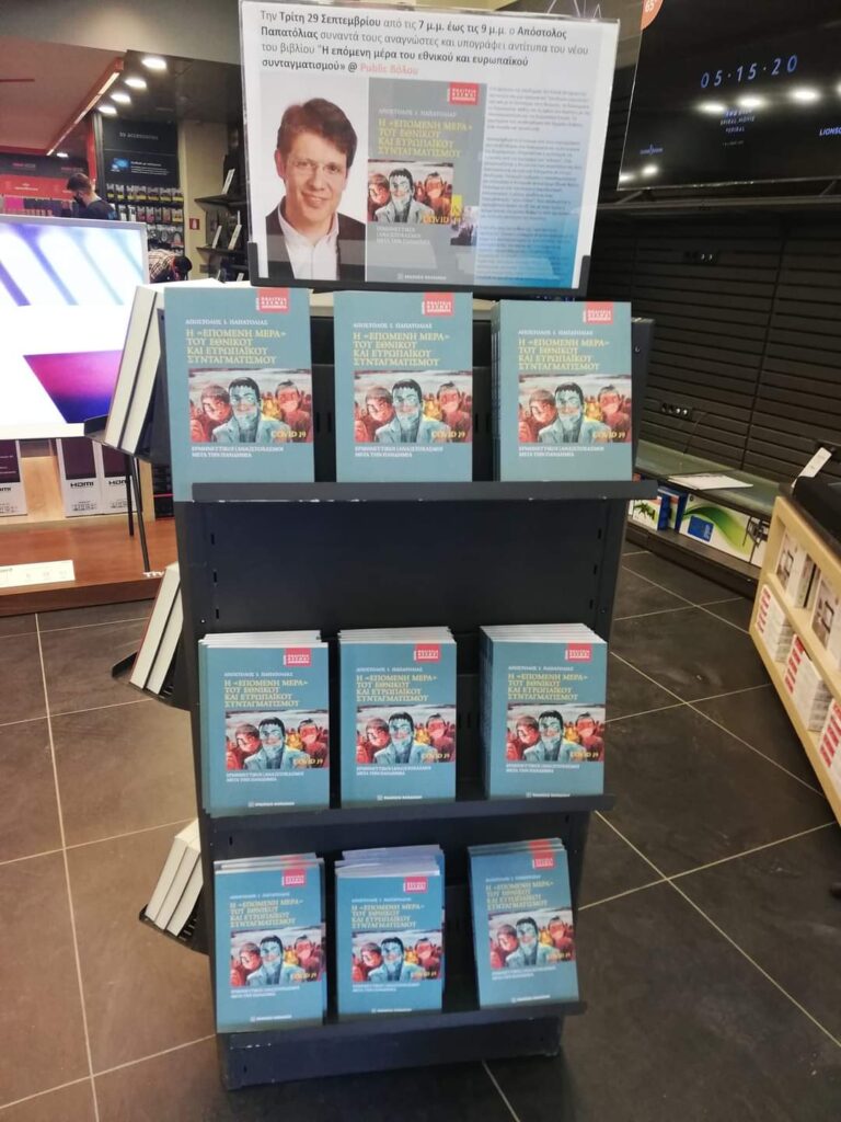 Το βιβλίο “Η επόμενη μέρα του εθνικού και ευρωπαϊκού συνταγματισμού” του Απόστολου Παπατόλια παρουσιάστηκε στο Public του Βόλου σήμερα το απόγευμα με τον συγγραφέα να υπογραφεί τα βιβλία του.