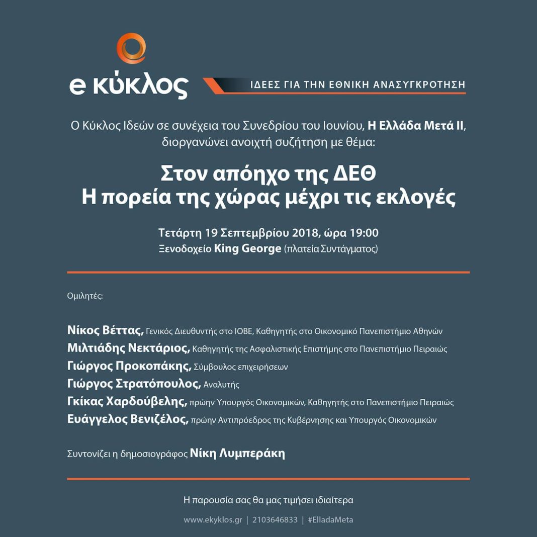 O Κύκλος Ιδεών σε συνέχεια του Συνεδρίου του Ιουνίου, Η Ελλάδα Μετά ΙΙ, διοργανώνει ανοιχτή συζήτηση με θέμα: