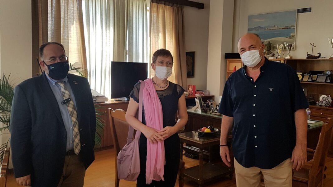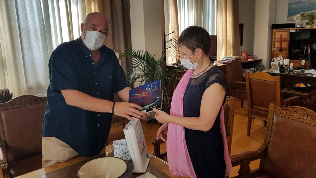 Εθιμοτυπική επίσκεψη στο Δήμαρχο Βόλου κ. Αχιλλέα Μπέο πραγματοποίησε σήμερα η Γενική Πρόξενος της Γεμανίας κυρία Σίβυλλα Μπέντικ συνοδευόμενη από τον επίτιμο πρόξενο της Γερμανίας στον Βόλο, κ. Γεωργ. ΠαπαρρίζοΚατά τη διάρκεια της συζήτησης θίχτηκαν θέματα αμοιβαίου ενδιαφέροντος και από πλευράς του Δημάρχου τέθηκε το θέμα της προσέλκυσης τουριστών αλλά και επενδύσεων από την φίλη χώρα και εταίρο μας στην Ε.Ε Γερμανία
