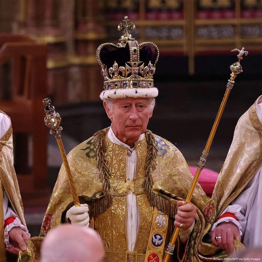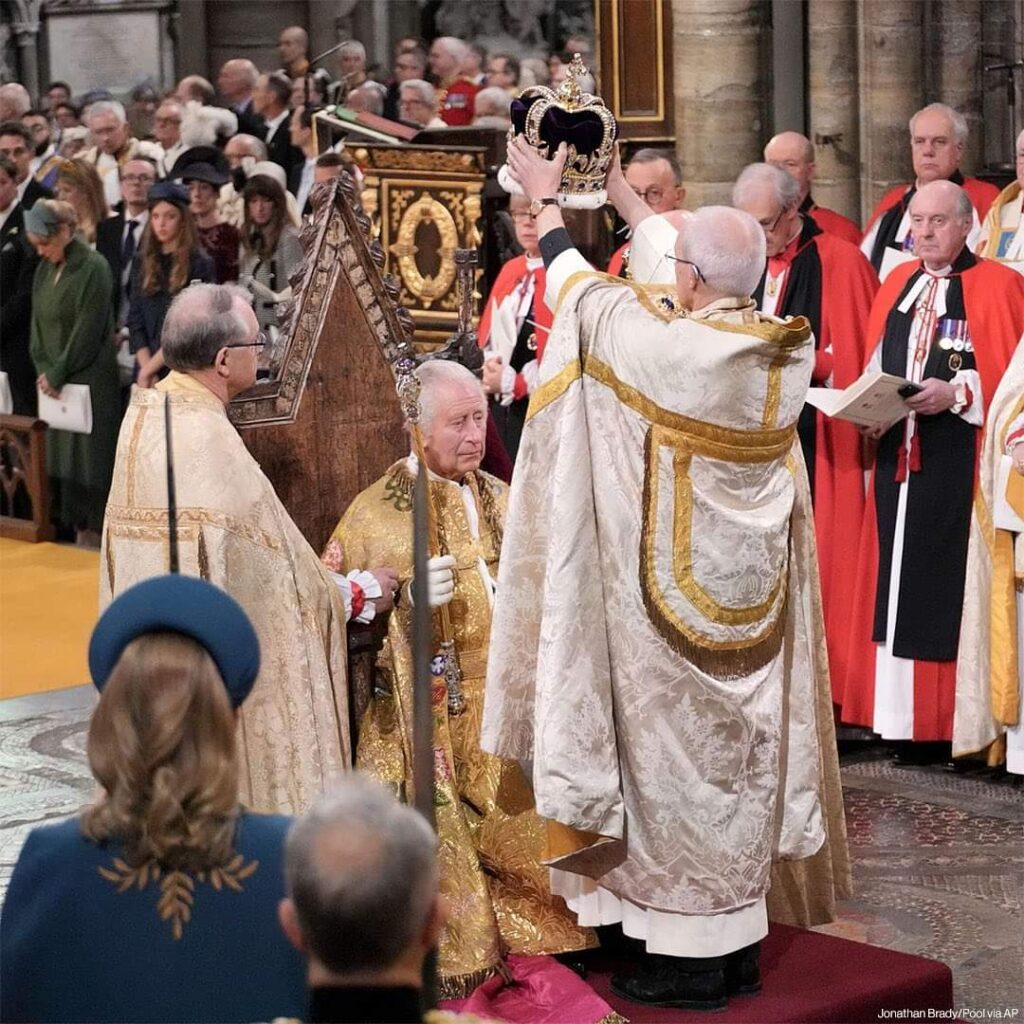 Σε ένα περίτεχνο και αρχαϊκό τελετουργικό που έχει να δει η Βρετανία από το 1953, ο βασιλιάς χρίστηκε με αγιασμένο λάδι και έδωσε τον όρκο των βασιλιάδων, προτού ο αρχιεπίσκοπος του Καντέρμπουρι, Τζάστιν Ουέλμπι, τοποθετήσει το στέμμα του Αγίου Εδουάρδου στο κεφάλι του, υπό την κραυγή «Ο Θεός να σώζει τον βασιλιά».