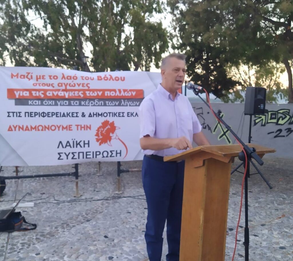 Ο Απόστολος Ριζόπουλος υποψήφιος δήμαρχος Βόλου με την ΛΑΪΚΗ ΣΥΣΠΕΙΡΩΣΗ στην ομιλία του τόνισε ότι Περιφέρεια και δήμοι, τόσο εκείνοι που ελέγχονται από τη ΝΔ, όσο και εκείνοι που ελέγχονται από τον ΣΥΡΙΖΑ – ΚΙΝΑΛ συνεχίζουν να λειτουργούν στην ίδια γραμμή με την κυβέρνηση. Προωθούν τους σχεδιασμούς του κεφαλαίου στις ΑΠΕ, στον Τουρισμό, στα οδικά έργα, στα αγροτοδιατροφικά, στην καινοτομία, τους Αναπτυξιακούς Οργανισμούς, κ.ά. Η αντιλαϊκή πολιτική τους αποδεικνύεται, πλήρως, από την απουσία μέτρων που αφορούν την πολιτική προστασία (αντιπλημμυρικά, αντισεισμικά, πυροπροστασία) ή για μέτρα που αφορούν την αντιμετώπιση των συνεπειών φυσικών καταστροφών, τις αποζημιώσεις, που όπως φαίνεται και από τις πρόσφατες ανακοινώσεις για τους πυρόπληκτους στην περιοχή μας, πρόκειται για μέτρα – καρμπόν, που σε καμία περίπτωση δεν αφορούν το σύνολο των ζημιών.
