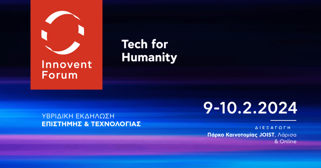 Η Περιφέρεια Θεσσαλίας συνδιοργανώνει τη μεγαλύτερη υβριδική Εκδήλωση Επιστήμης & Τεχνολογίας, Innovent Forum, που θα διεξαχθεί στις 9 και 10 Φεβρουαρίου 2024 στο Πάρκο Καινοτομίας JOIST στη Λάρισα και διαδικτυακά μέσω live streaming.