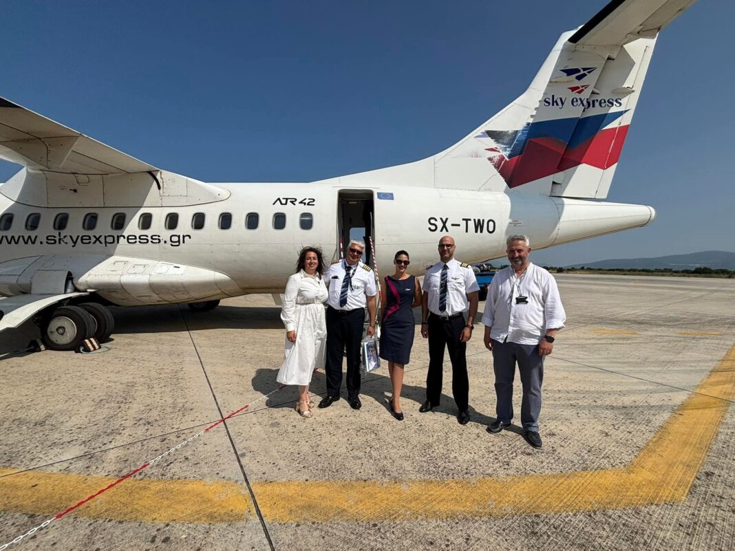 Με ιδιαίτερη θέρμη υποδεχθηκε χθες το Τμημα Τουρισμού του Δήμου Βόλου στο αεροδρόμιο της Νέας Αγχιάλου την πρώτη πτήση της Sky Express από το Ηράκλειο, που σηματοδοτεί την σταθερή, απευθείας αεροπορική σύνδεση της Κρήτης με την Θεσσαλία τον Βόλο και το Πήλιο που θα εξυπηρετείται κάθε Τρίτη και Παρασκευή.