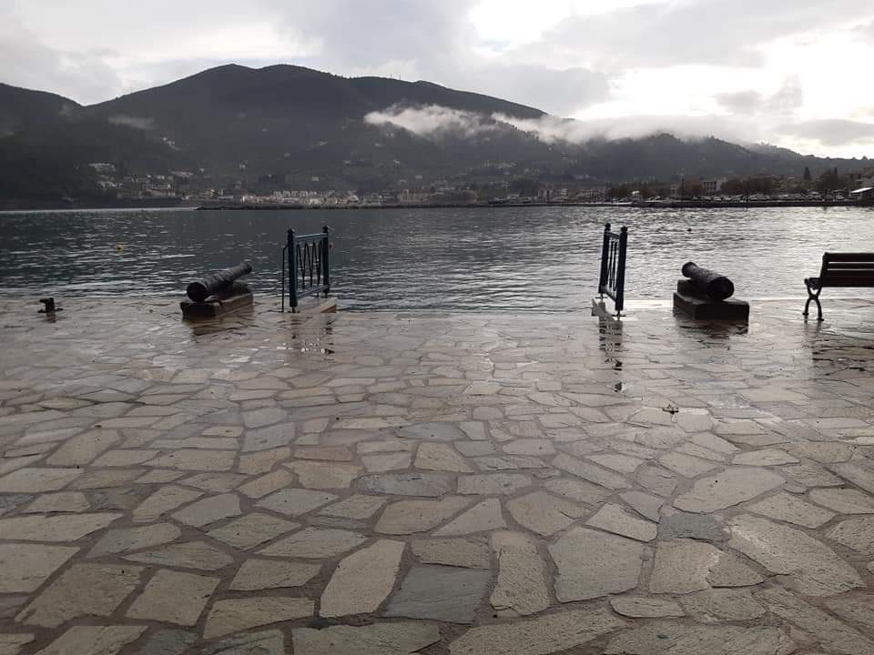 Συνεχίζεται το πέρασμα της κακοκαιρίας Δειδώ από την Μαγνησία. Στη Σκόπελο η παλίρροια έβγαλε τη θάλασσα στη στεριά στο ύψος των κανονιών στο παλιό Λιμάνι.