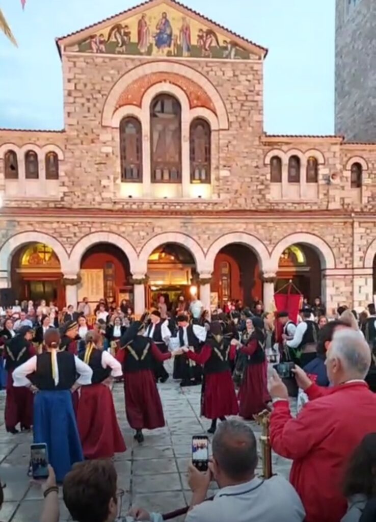 Πραγματοποιηθηκε παρα την απειλή της βροχής το 3ο ΑΝΤΑΜΩΜΑ ΧΟΡΕΥΤΙΚΩΝ ΣΥΝΟΛΩΝ ΜΑΓΝΗΣΙΑΣ στον προαύλιο χώρο του Ιερού Ναού, στην παραλία Βόλου, στο οποιο συμμετείχαν 45 χορευτικα συγκροτήματα από ολόκληρη τη Μαγνησία