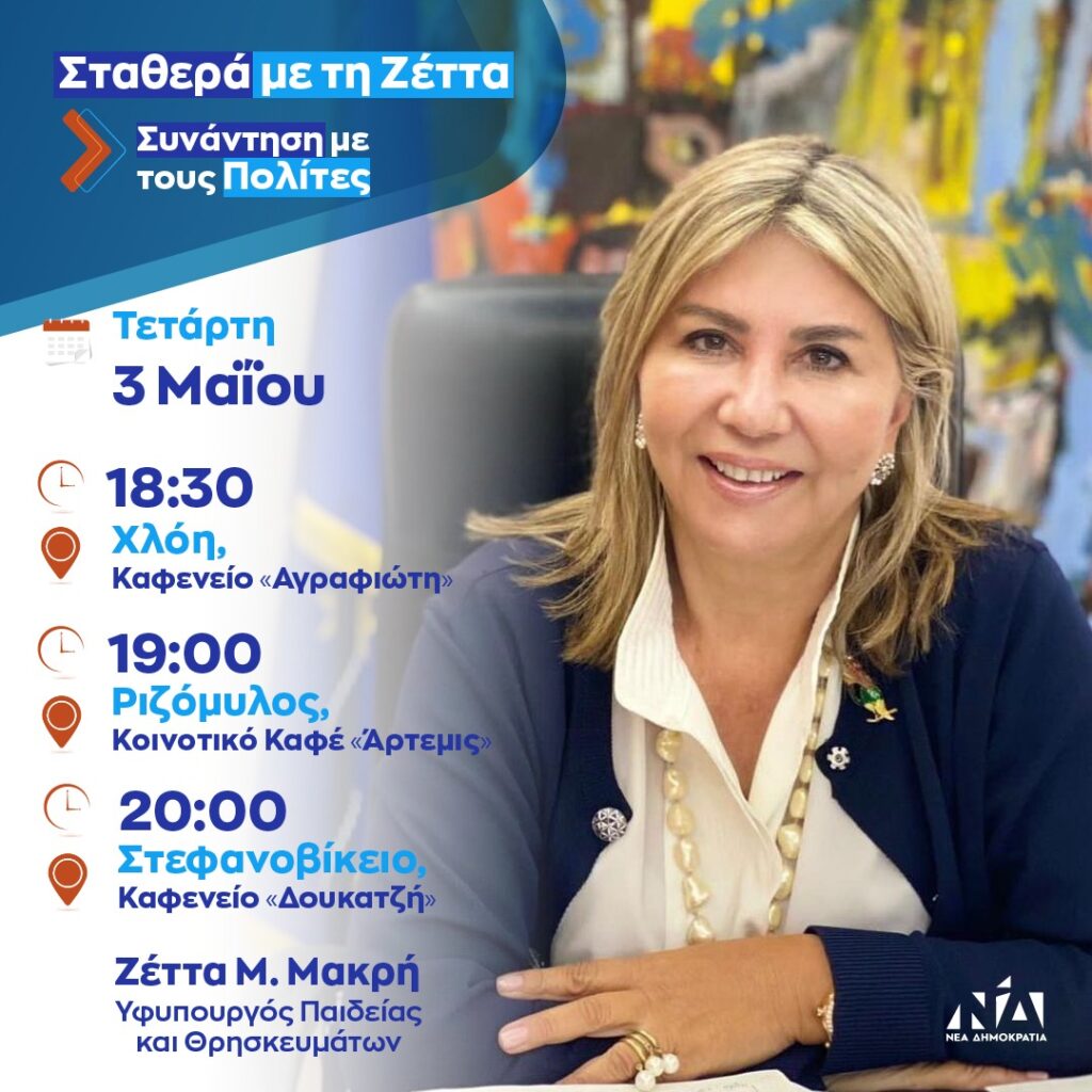Συνάντηση με τους πολίτες Τετάρτη 3/5: Χλόη, Ριζόμυλο, Στεφανοβίκειο