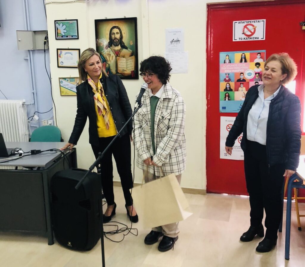 Η κα Μακρή ανέφερε για τη μεγάλη επιτυχία του Χρήστου Κυρίτση: “Ένας μαθητής του σχολείου σας βραβεύτηκε σε έναν διεθνή διαγωνισμό, όπου 259 σχολικές μονάδες από Κύπρο, Ελλάδα και Ομογένεια, 13.000 μαθητές και 1359 μαθητικές δημιουργίες ανέδειξαν ισάριθμους νικητές! Αυτό είναι ένα σπουδαίο νέο, που αξίζει να το αναδείξουμε και να καμαρώνουμε!