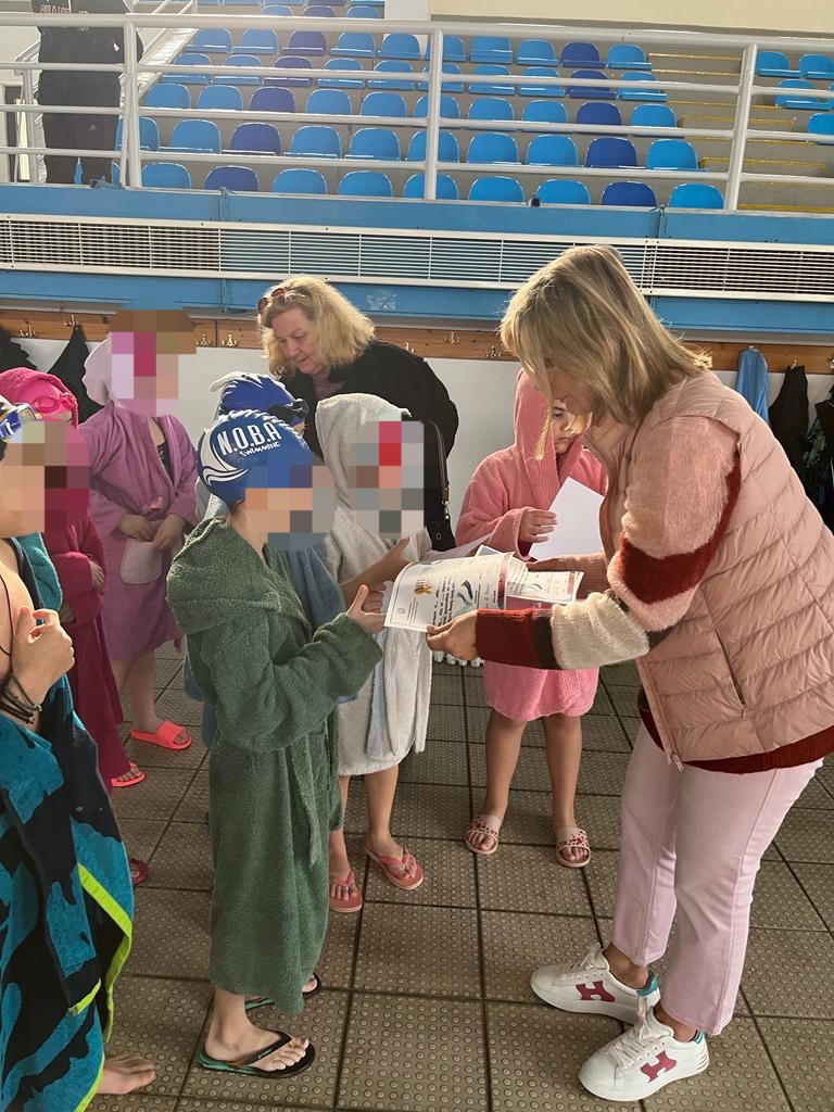 Η κα Μακρή μοιράστηκε τη χαρά των μαθητών που συμμετείχαν στο μάθημα της κολύμβησης και μετά το τέλος του μαθήματος συνομίλησε μαζί τους, τους έδωσε απλές και χρηστικές συμβουλές και υπογράμμισε την αναγκαιότητα της εκμάθησης της κολύμβησης από μικρή ηλικία και την εξοικείωση των παιδιών με θέματα σχετικά με την ασφάλειά τους στο νερό και τη θάλασσα. Επίσης, απένειμε τα αναμνηστικά διπλώματα συμμετοχής στις μαθήτριες και τους μαθητές, φωτογραφήθηκε μαζί τους, ύστερα από πρόσκλησή τους και με μεγάλη ευχαρίστησή της και δέχθηκε την αγάπη τους και την ανθοδέσμη που της πρόσφεραν.