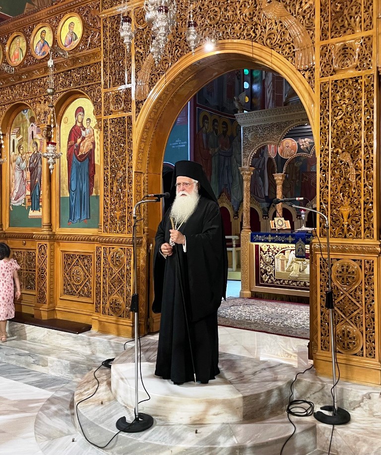 Ο Μητροπολίτης, στο κήρυγμά του, ανέφερε αρχικά πως «έχει καθιερωθεί εδώ και δεκατέσσερα χρόνια να κλείνει ο κύκλος των “Αυγουστιάτικων Παρακλήσεων” ενόψει του Δεκαπενταύγουστου, στον Ιερό Ναό Ευαγγελίστριας. Και πλαισιώνεται η Παράκληση προς την Υπεραγία Θεοτόκο από την πολιτιστική εκδήλωση που καθιερώθηκε από τη “Μαγνήτων Κιβωτό” και με τη μεγάλη συμβολή του αείμνηστου Νίκου Τσούκα, ο οποίος είναι και φέτος μαζί μας με ξεχωριστό τρόπο, έστω κι αν εμείς δεν μπορούμε να τον αντιληφθούμε με τις φυσικές μας δυνάμεις.