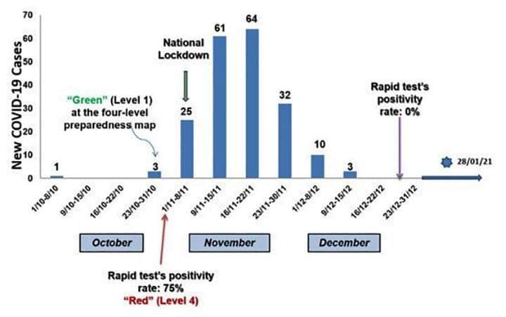 Η Πνευμονολογική κλινική του Πανεπιστημίου Θεσσαλίας μελετάει τον τελευταίο χρόνο την εξέλιξη της πανδημίας στη Δεσκάτη. Εκεί, την πρώτη εβδομάδα του Νοεμβρίου του 2020 η θετικότητα των τεστ έφθασε στο 75%, ενώ σε λιγότερο από δύο μήνες μετά, η θετικότητα των τεστ μηδενίστηκε (εικόνα1).
