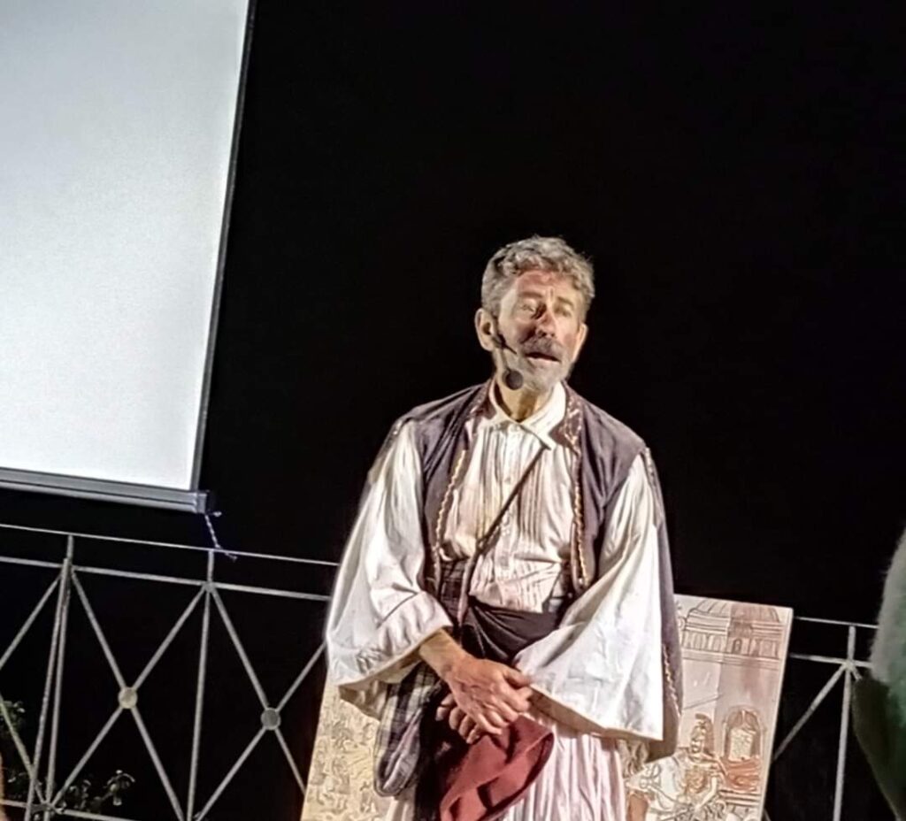 Καθηλωτικός ήταν ο Θοδωρής Προκοπίου στο ρόλο του Θεοφίλου στον υπέροχο θεατρικό μονόλογο που παρουσιάστηκε στο Αρχοντικό Ζαφειρίου χθες το βράδυ.