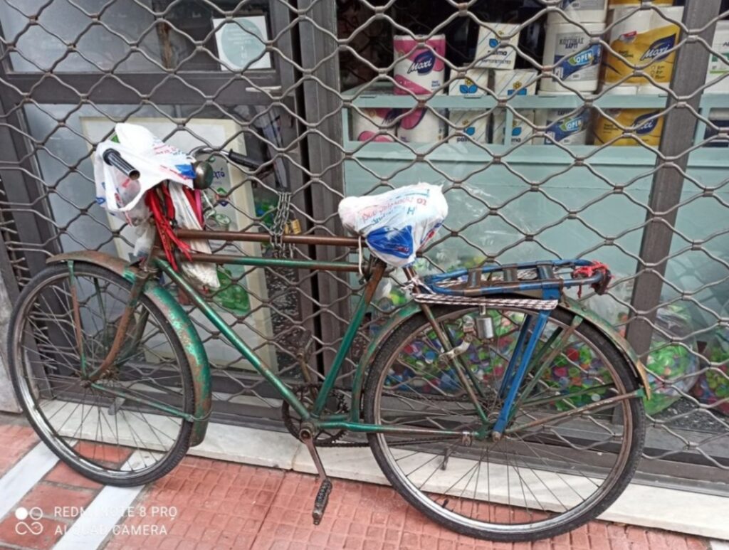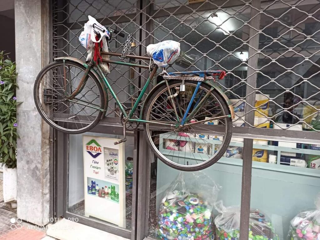 Ο ιδιοκτήτης του μικρού μαγαζιού στο κέντρο της πόλης του Βόλου είδε και απο είδε… & εν τέλει άνοιξε το μαγαζί του ανεβάζοντας ρολά και ποδήλατο μαζί…