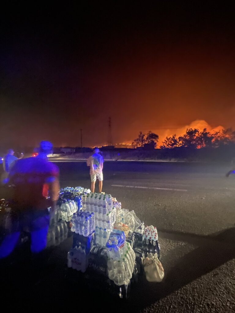 Μεγάλο είναι το κύμα αλληλεγγύης προς τους Πυροσβέστες, αστυνομικούς, στρατιώτες και εθελοντές που δίνουν την μάχη με τις φλόγες. οι πολίτες πηγαίνουν νερά και τρόφιμα σε δύο σημεία στο κόμβο του περιφερειακού στα Μελλισιάτικα και στον κόμβο του Σέσκλου, όπου ομάδες νέων παιδιών πηγαίνουν τις προμήθειες στους πυροσβέστες.