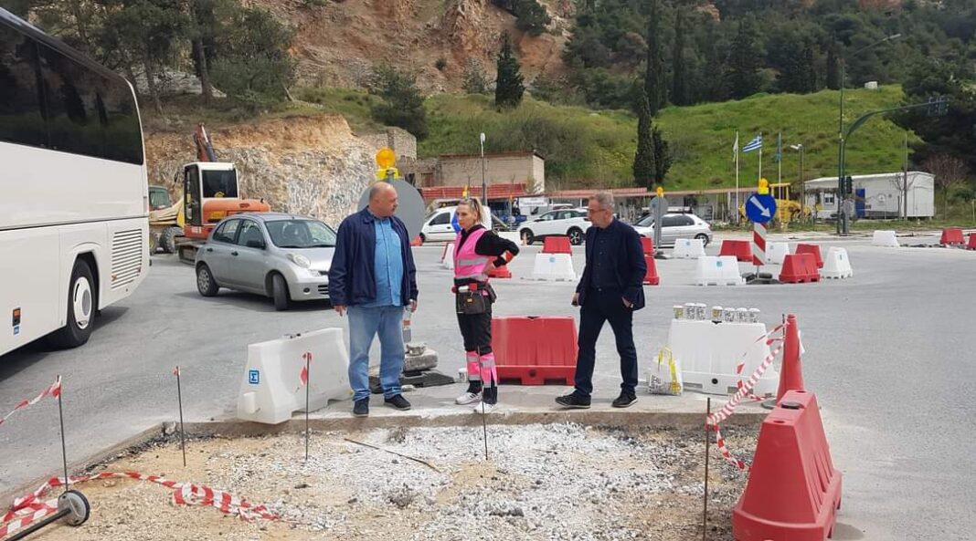 Στη συνέχεια επισκέφθηκαν στον Αναυρο το χώρο όπου κατασκευάζεται με ικανοποιητικούς ρυθμούς ο νέος κυκλικός κόμβος όπως διαπιστώθηκε από την πρόοδο των εργασιών