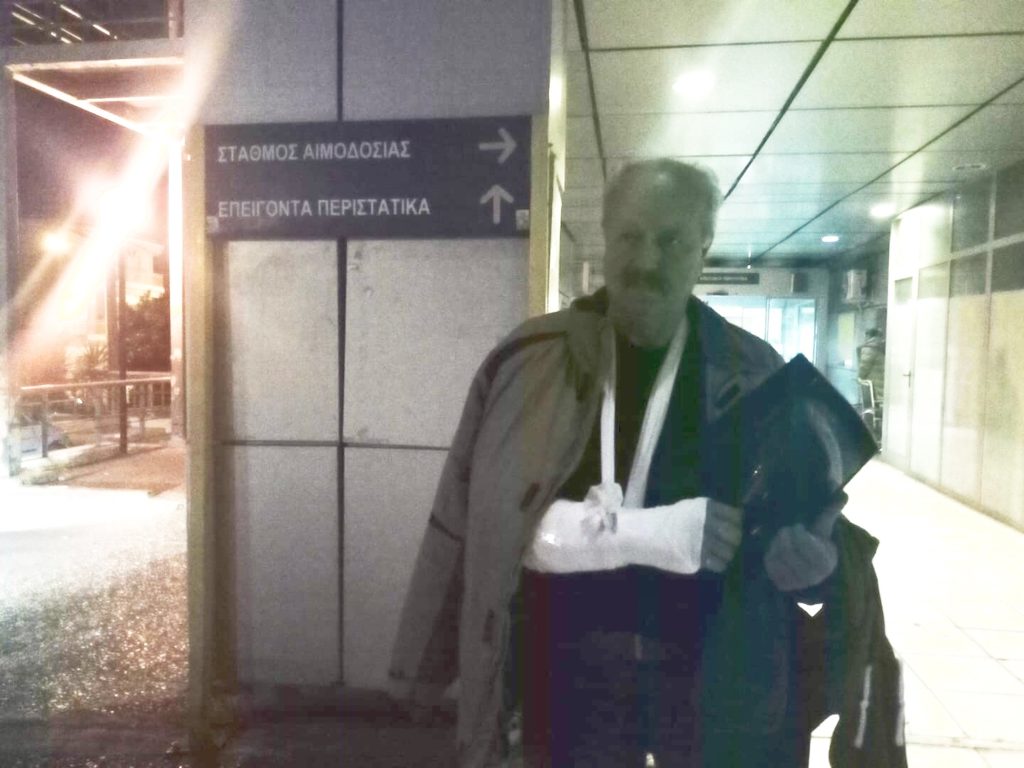 Ο Στέλιος Λημνιός μετά την “μάχη” με τα ΜΑΤ στην είσοδο του Δημαρχείου στην εκδήλωση του ΣΥΡΙΖΑ με τον κ. Σκουρλέτη