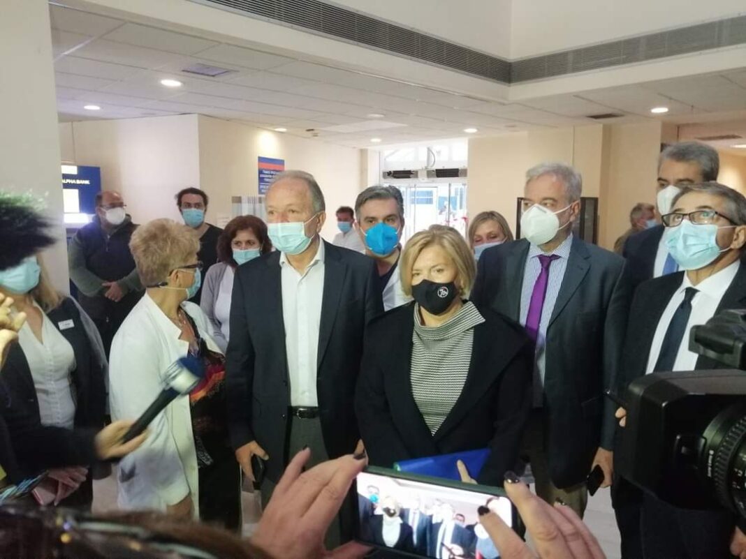 “Κανένας ασθενής δεν θα μείνει χωρίς την απαραίτητη ιατρική φροντίδα”. Αυτό το μήνυμα έστειλε η Αναπληρώτρια Υπουργός Υγείας Μίνα Γκάγκα, από τον Βόλο, που συναντήθηκε με την Διοίκηση, τους γιατρούς και τους εργαζομένους του Νοσοκομείου Βόλου. Η παρουσία της Υπουργού στον Βόλο αυτή την περίοδο ήταν σημαντική προκειμένου να μιλήσει με τους πρωταγωνιστές στην αντιμετώπιση αυτής της πρωτοφανούς υγειονομικής κρίσης και να αποφασισθούν βήματα για την ανακούφιση του συστήματος και την διαχείριση της κατάστασης.