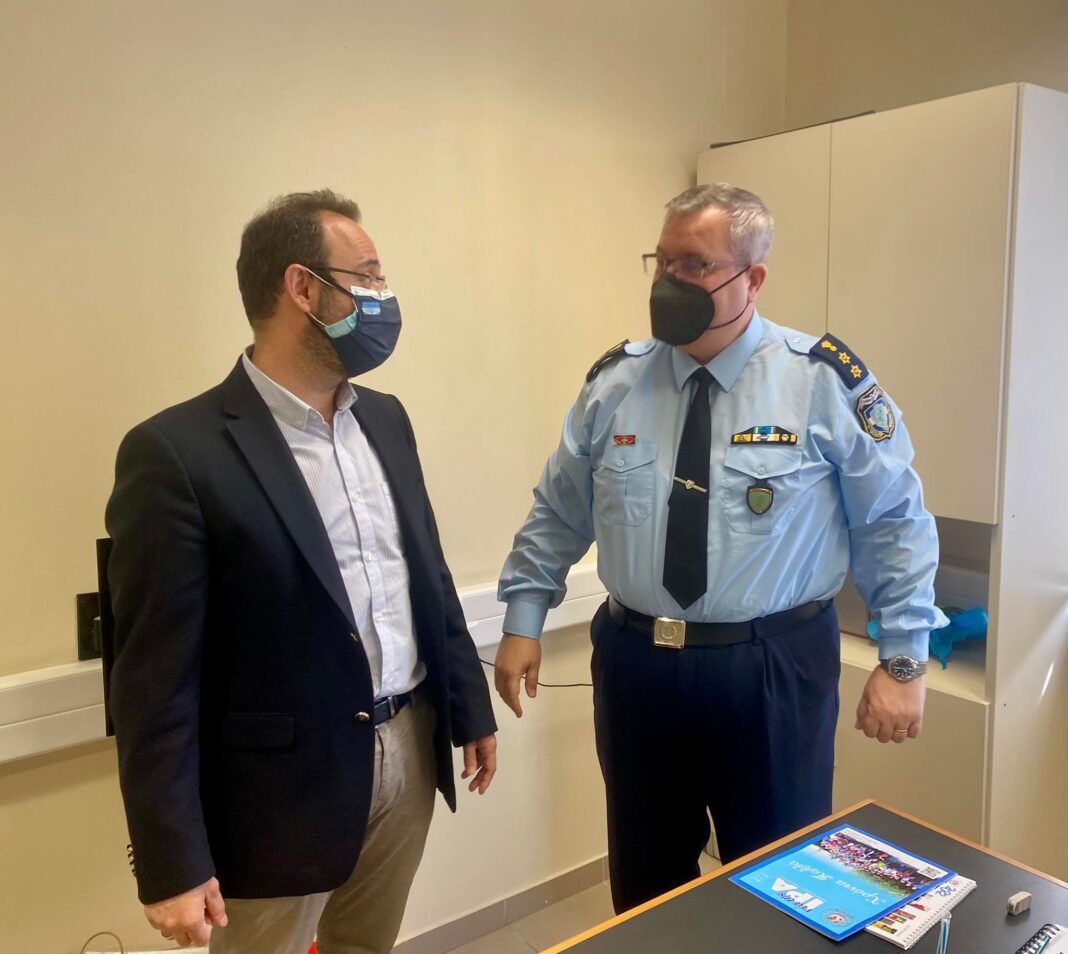 Ο βουλευτής συνομίλησε επίσης με τον κ. Αθανάσιο Καλαμπόκα, υποδιευθυντή της Διεύθυνσης Αστυνομίας Μαγνησίας, τον κ. Διαμαντή Καρβέλη, διοικητή της Υποδιεύθυνσης Ασφάλειας Βόλου, τον κ. Αθανάσιο Κουλούρη, διοικητή του Τμήματος Τροχαίας Βόλου, τον κ. Αργύρη Διχτά, υποδιοικητή του Α.Τ. Βόλου, πρόεδρο της Ένωσης Αστυνομικών Υπαλλήλων Μαγνησίας και τακτικό μέλος του Ανώτατου Συμβουλίου Μεταθέσεων.