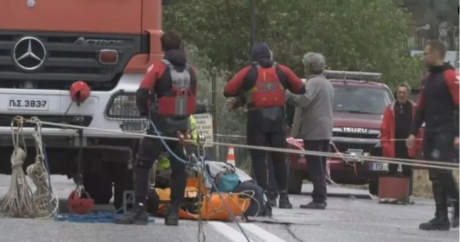 Οι νεφροπαθείς μπήκαν σε φορείο και σιγά – σιγά με τα σχοινιά μεταφέρθηκαν στην απέναντι πλευρά του δρόμου που κατέρρευσε.