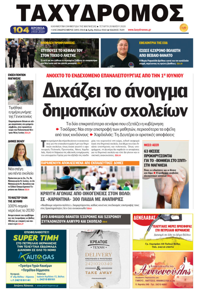 Out stigmes Με ένα κλικ τα Πρωτοσέλιδα του τοπικού Τύπου Out stigmesΒόλος Με ένα κλικ τα Πρωτοσέλιδα του τοπικού Τύπου 20 Μαΐου 2020 ΠΑΡΟΜΟΙΑ ΑΡΘΡΑΠΕΡΙΣΣΟΤΕΡΑ ΥΠΟΒΟΛΗ ΣΥΜΜΕΤΟΧΩΝ ΣΤΟΥΣ ΦΩΤΟΓΡΑΦΙΚΟΥΣ ΔΙΑΓΩΝΙΣΜΟΥΣ TLOUPAS PATH Η Ορχήστρα Σύγχρονης Μουσικής της ΕΡΤ για μιαονειρική μουσική παράσταση στο Βόλο Επιχειρηματική αποστολή στο Μαρόκο οργανώνει η Περιφέρεια Θεσσαλίας Πρόσφατα Πυροβολισμοί στο Αλιβέρι: Έκρυθμη η κατάσταση – Ισχυρές αστυνομικές δυνάμεις 30 Δεκεμβρίου 2025 Πανεπιστημιακό Νοσοκομείο: Καθησυχαστικοί οι γιατροί για 3χρονο από τον Βόλο με επιπλοκές λόγω γρίπης 30 Δεκεμβρίου 2025 Στην Ευαγγελίστρια η ομάδα της Νίκης δίπλα στους αδύναμους δημότες 30 Δεκεμβρίου 2025 Ανανεώθηκε η θητεία των Αντιδημάρχων στο Δήμο Βόλου 30 Δεκεμβρίου 2025 Αναπληρωτής Περιφερειαρχης ο Κ.Μπαρμπούτης- Ανανεώθηκε η 30 Δεκεμβρίου 2025 Ζέττα Μακρή στο Ράδιο ΕΝΑ: «Τσομπανάκος ο δήμαρχος Βόλου- Πρέπει να δώσει απαντήσεις» 30 Δεκεμβρίου 2025 Καμιά απάντηση για την Αργώ και το Μουσείο από τον “χαβαλέ” Αντιδήμαρχο του Μπέου (video) 29 Δεκεμβρίου 2025 Παραιτήθηκε ο Μπάμπης Ζάχος από το δημοτικό συμβούλιο – Στη θέση του ο Νίκος Κάπελας 29 Δεκεμβρίου 2025 Στην Βιβλιοθήκη της Σκοπέλου η δωρεά βιβλίων Ε. Σούρλα – Εκδήλωση παρουσία του Δ.Κουρέτα 29 Δεκεμβρίου 2025 Στην Παιδιατρική του νοσοκομείου ο Αϊ Βασίλης ήρθε από την καμινάδα 29 Δεκεμβρίου 2025