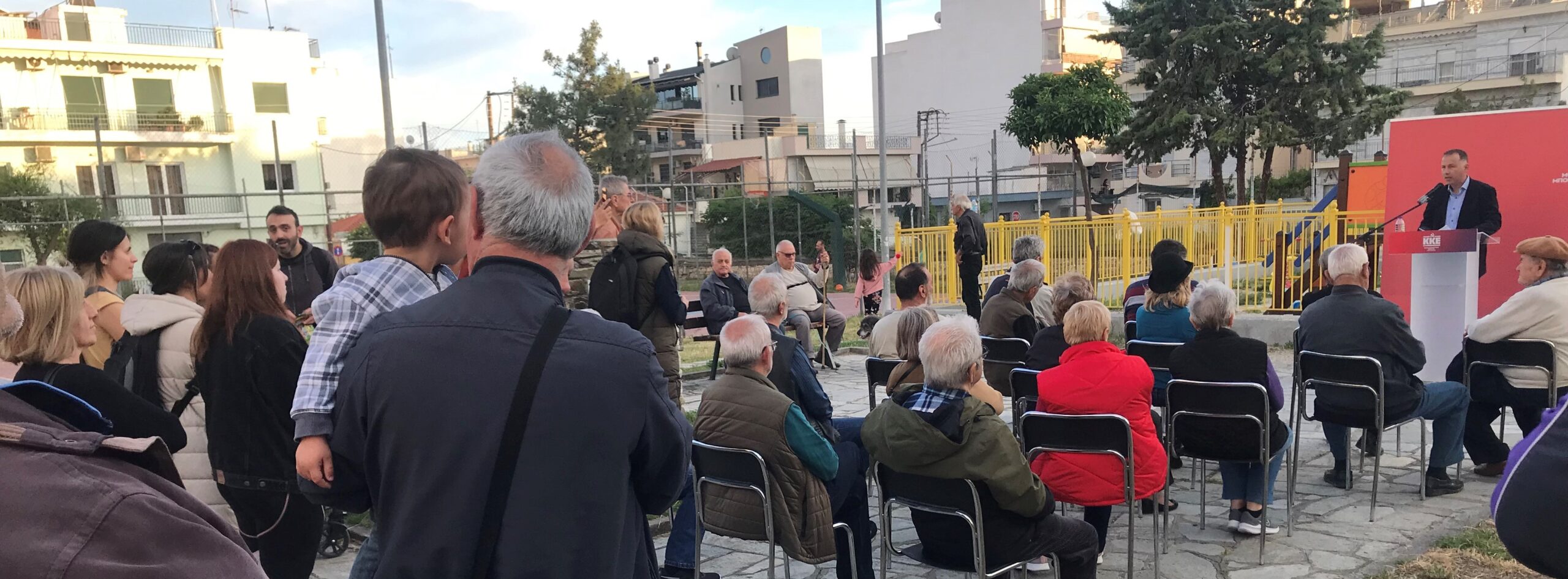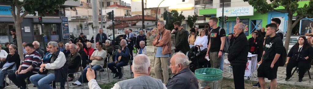 Στη συγκέντρωση μίλησε ο Βασίλης Μεταξάς, μέλος του Γραφείου Περιοχής Θεσσαλίας και υποψήφιος βουλευτής.