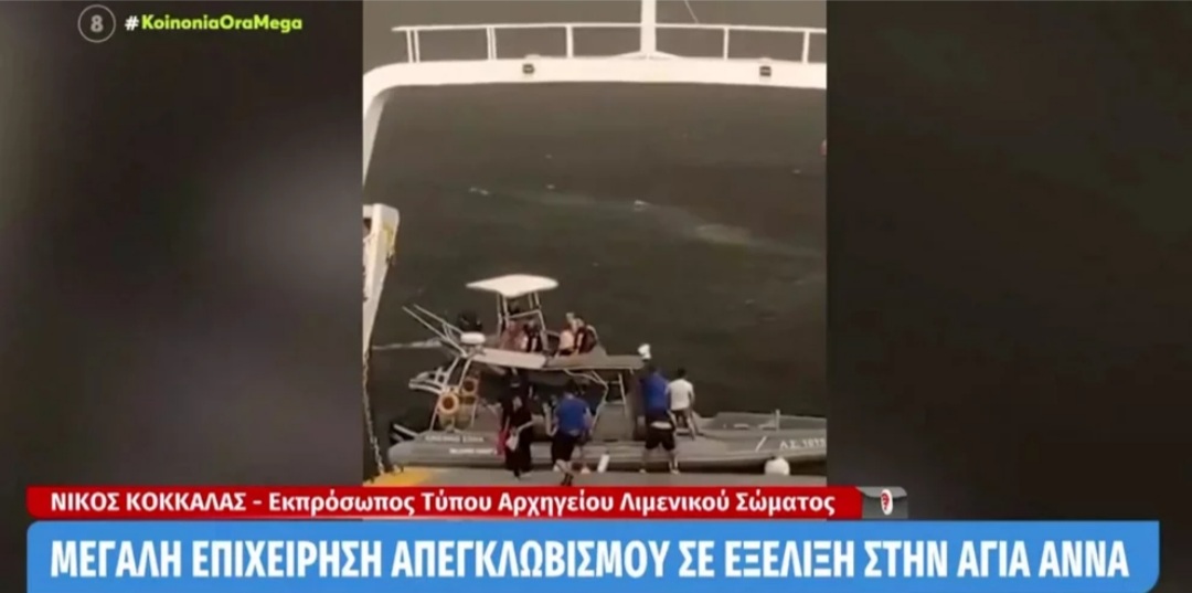 Χθες βράδυ τηλεοπτικοί σταθμοί μετέδωσαν εικόνες από την απομάκρυνσης διά θαλάσσης κατοίκων από την Αγία Άννα.
