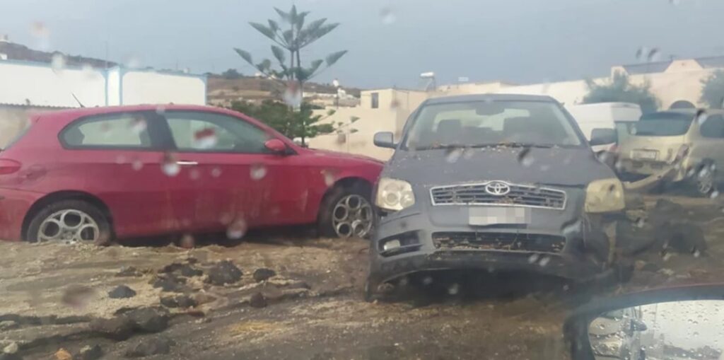 Παρέσυρε αυτοκίνητα ή καταιγίδα στη Σαντορίνη