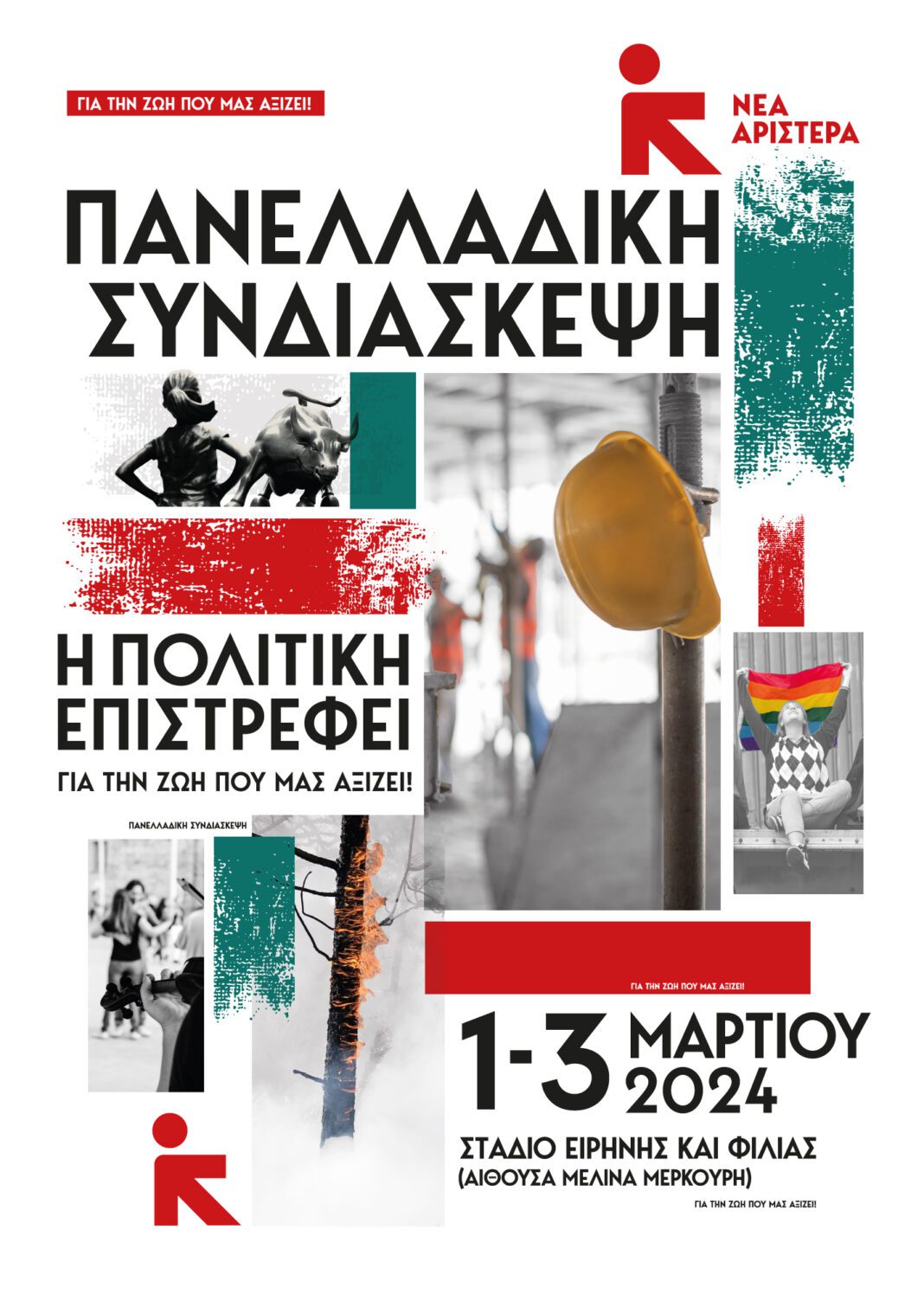Στο πλαίσιο αυτό, η Νέα Αριστερά προσκαλεί σε μια ανοιχτή πανελλαδική διαδικασία στις 1, 2 και 3 Μαρτίου στο Στάδιο Ειρήνης και Φιλίας. Σε μια ανοιχτή ιδρυτική συνδιάσκεψη που θα εμπνεύσει εμπιστοσύνη και σιγουριά στην κοινωνία. Για να μιλήσουμε με σαφή τρόπο για τα μεγάλα θέματα της εποχής μας, προτάσσοντας τη δυνατότητα και την αναγκαιότητα μιας νέας αρχής για την Αριστερά που χρειαζόμαστε, και για τη χώρα. Για μια κοινωνία με ισότητα, ελευθερία και δικαιοσύνη. Για τη ζωή που μας αξίζει».