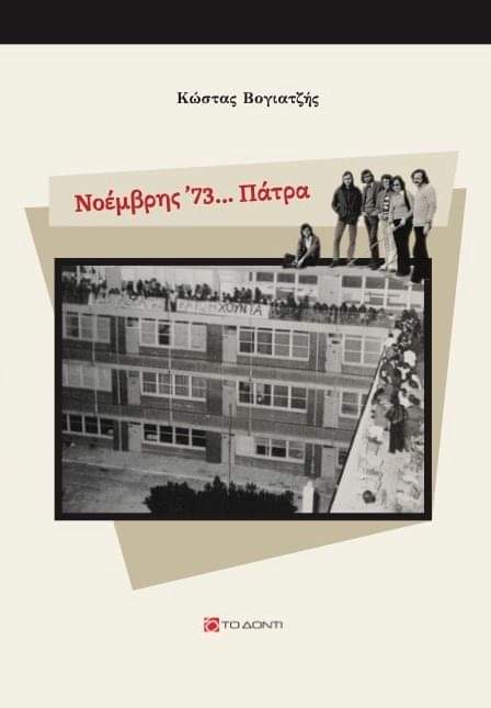 Σήμερα εγινε η παρουσίαση του βιβλίου «Νοέμβρης ’73.. Πάτρα» του πρώην Γραμματέα της Ν.Ε του ΣΥΡΙΖΑ Κώστα Βογιατζή. Πρόκειται για ένα βιβλίο που φωτίζει άγνωστα σημεία για την εξέγερση των φοιτητών το ‘73 σε μία επαρχιακή πόλη, την Πάτρα και αποτελεί ένα νέο πεδίο γνώσης αλλά και έμπνευσης.