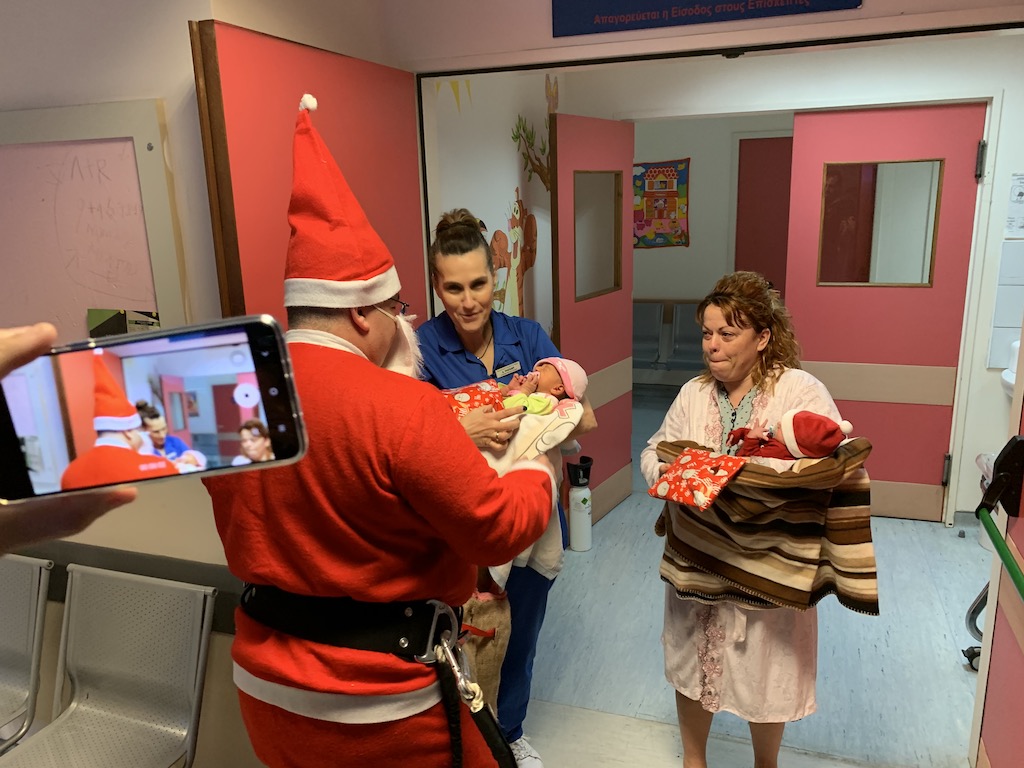 Ο Άγιος Βασίλης ήρθε με καλαθοφόρο της Πυροσβεστικής στο Νοσοκομείο του Βόλου(video)