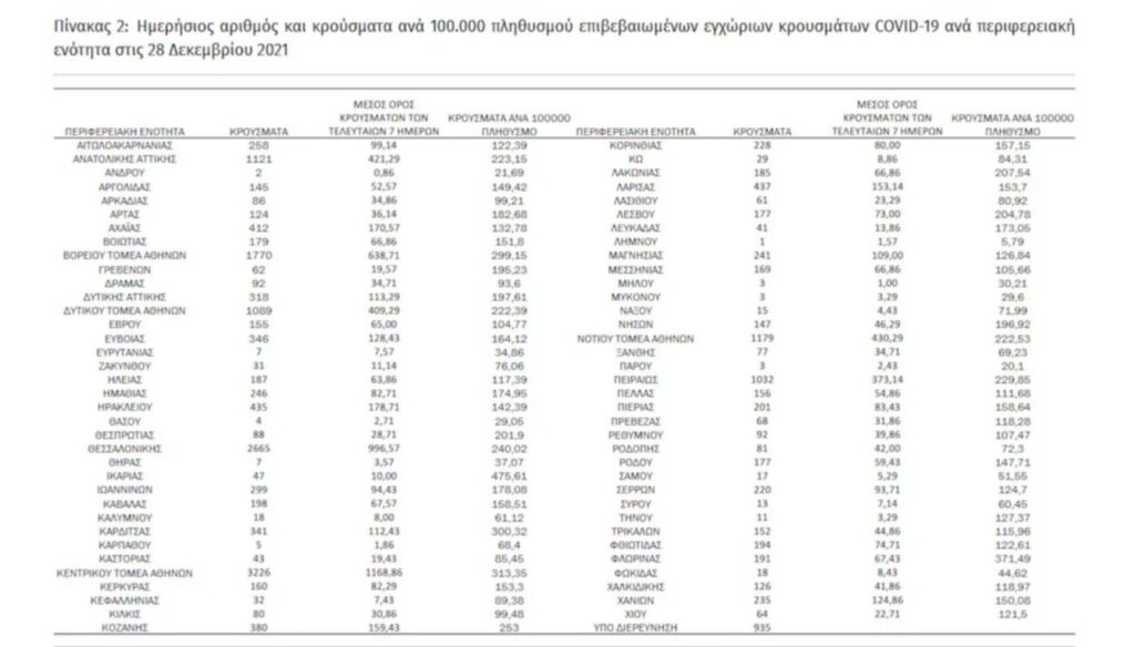 Η γεωγραφική κατανομή των 21.657 κρουσμάτων covid-19 έχει ως εξής: