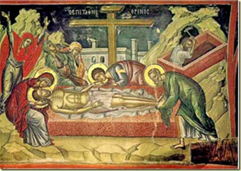 Την Μεγάλη Παρασκευή η Εκκλησία μας παρουσιάζει τη Θεόσωμο Ταφή του Χριστού. Μπροστά στον Επιτάφιο, ψέλνουμε τα εγκώμια. Δεν θρηνούμε έναν νεκρό. Η πηγή της ζωής δεν είναι δυνατόν να δεσμευθεί από τον θάνατο. Θρηνούμε τον δικό μας πνευματικό θάνατο. Θρηνούμε τη δική μας ανικανότητα να αγαπήσουμε τον Θεό. Θρηνούμε για την ανυπακοή και τις αμαρτίες μας και παρακαλούμε το Θεάνθρωπο Λυτρωτή μας να μάς σώσει και να μάς λυτρώσει από αυτήν την τραγική μοίρα.