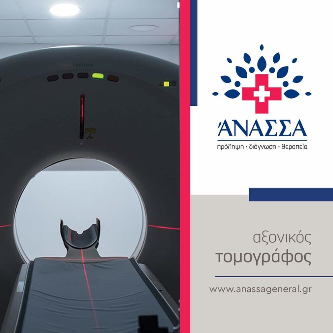 Η ΆΝΑΣΣΑ διαθέτει έναν από τους πλέον σύγχρονους αξονικούς τομογράφους, χαμηλής δόσης ακτινοβολίας νέας τεχνολογίας 128-τομών.