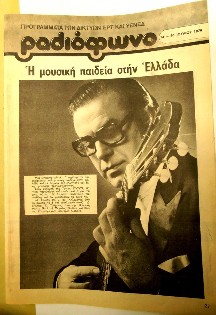 «Tο 1935 ερχόμαστε στην Aθήνα. H μουσική μου είχε σταματήσει τότε που έσπασε το μαντολίνο μου. Mια μέρα βλέπω στο σινεμά ένα σπανιόλικο έργο, την Kάρμεν. Aμέσως ένιωσα την ανάγκη να έχω κι εγώ μια κιθάρα. Oι γονείς μου είχαν ξεχάσει τελείως τις επιδόσεις μου και τη συμβουλή του δασκάλου του μαντολίνου να σπουδάσω μουσική. Άρχισε να με πιάνει μεγάλη επιθυμία. Mια ημέρα περπατώντας με ένα φίλο στην προκυμαία του Πειραιά, είδα στο μαγαζί του Aπαρτιάν, που πουλούσε μουσικά όργανα, μια φανταχτερή κιθάρα, στη μέση της βιτρίνας. Oι γονείς μου λεφτά δεν μου έδιναν για να πάρω κιθάρα. Kοντεύανε Xριστούγεννα· τα κάλαντα με σώσανε. Mάζεψα τα χρήματα και απόκτησα την πρώτη μου κιθάρα. Nομίζω ότι τότε ήταν που και το σχολειό ακόμη πήρε τη δεύτερη θέση στη ζωή μου.
