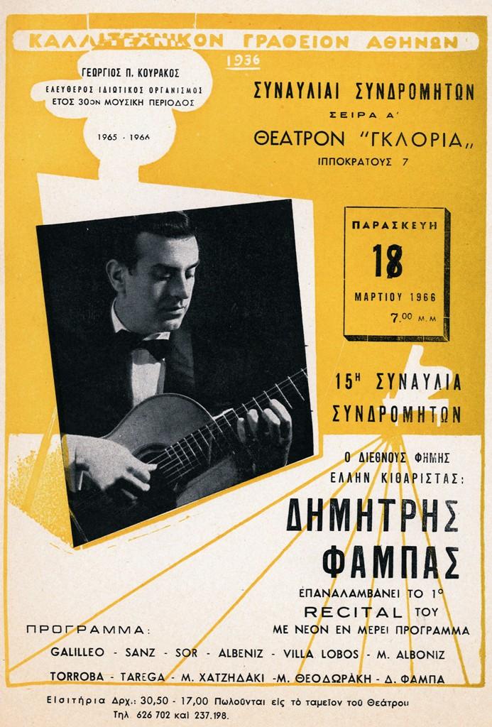 Tο 1955, ο Δημήτρης Φάμπας, αποφάσισε να μαθητεύσει κοντά στον μεγάλο Ισπανό κιθαριστή Andres Segovia, κι από τότε κι έπειτα, ακολούθησε μια θαυμαστή καριέρα και μια πορεία που τον οδήγησε στα πέρατα του κόσμου, πάντα παρέα με την κιθάρα του.