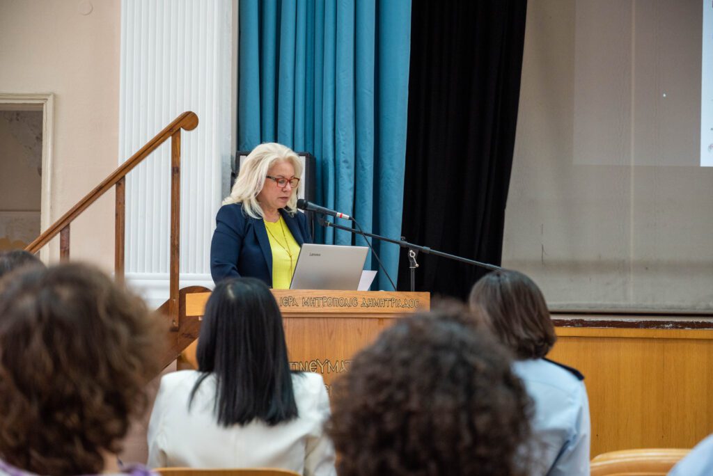Ιδιαίτερα συγκινητική ήταν η στιγμή που τιμήθηκε η Ολυμπία Τσιμτσιλή-Νοσηλεύτρια, η οποία αποχώρησε από τη Μονάδα Μεσογειακής Αναιμίας του Γ.Ν.Βόλου, λόγω συνταξιοδότησης.