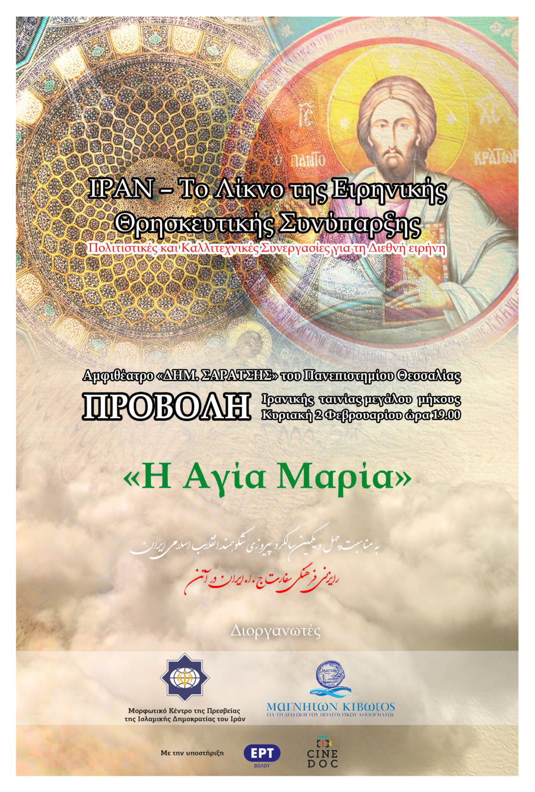 Για τους λόγους αυτούς με μεγάλη χαρά αποδέχθηκε την πρόταση του Μορφωτικού Κέντρου της Πρεσβείας του Ιράν στην Αθήνα και σε συνεργασία με τη «Μαγνήτων Κιβωτό» και με την υποστήριξη το CineDoc Βόλου, διοργανώνει την προβολή της Ιρανικής ταινίας μεγάλου μήκους «Η Αγία Μαρία», στο Αμφιθέατρο «Δημήτρης Σαράτσης» του παραλιακού Συγκροτήματος του Πανεπιστημίου Θεσσαλίας, αύριο Κυριακή 2 Φεβρουαρίου 2020 στις 19.00.
